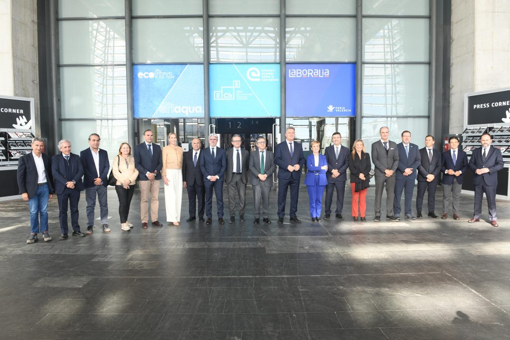 València, 11 de noviembre de 2025.- Feria Valencia ha inaugurado esta mañana un gran encuentro ferial que marca el nuevo impulso para la transición ecológica y la sostenibilidad empresarial en España. Las ferias Ecofira y Efiaqua, junto a Eco Chemical Solutions, Energy Global Expo & Congress y Laboralia reúnen desde hoy hasta el próximo jueves a un total de 250 firmas expositoras y más de 350 marcas representadas, que mostrarán sus soluciones más innovadoras en economía circular, energías renovables, tratamiento de residuos, gestión del agua y salud laboral.